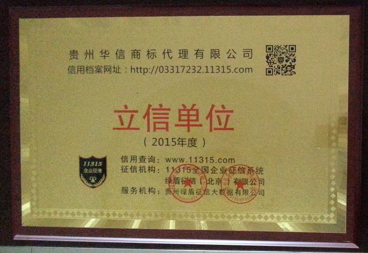 “立信單位”牌匾 華信在11315全國企業(yè)征信系統(tǒng)備案并授予“立信單位”牌匾。